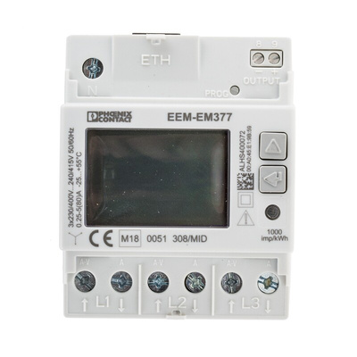 The Phoenix Contact digital power meters is an 8-digit 3-phase power meter for measuring active power with direct measurement of up to 500V/80A, with S0 output, with digital input and Ethernet interface.