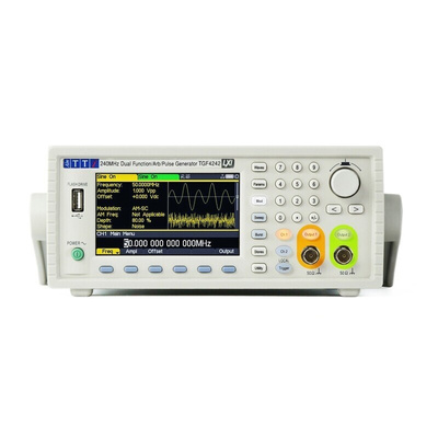 The TGF4000 series is the latest function/arbitrary generator series from Aim-TTi offering class-leading performance and unrivalled value for money.A frequency capability of up to 240MHz is combined with two identical full performance channels that can operate as independent generators or in coupled or tracking modes. Precise channel to channel phase control with a resolution of 0.0010 is provided.A wide range of built-in waveforms is included and custom arbitrary waveforms can be used at sample speeds up to 800MSa/s and replay rates up to 80MHz. PC based arbitrary waveform generation and editing software is provided.High resolution, low jitter pulses can be generated up to 100MHz as can wide bandwidth white noise. An extensive array of modulations is provided using internal and external sources. Gated, burst and sweep modes can use internal or external trigger sources.
