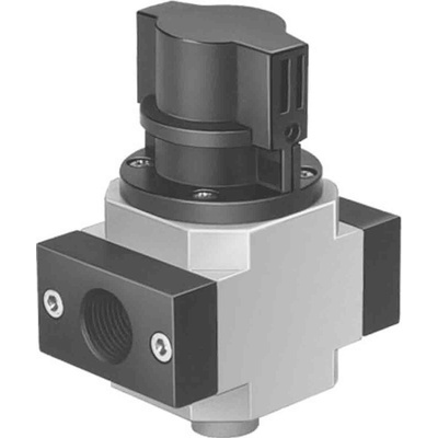 The Festo on-off valve used for service unit with threaded connecting plate which has manual actuator and piston slide of structure. It used operating pressure up to 0 -16 bar and has a 2 position. It has 2 moderate corrosion stress.