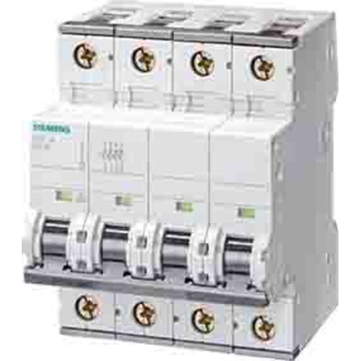 The miniature circuit breaker provides voltage of 400 V with 4-pole configuration. In the event of an overload or short-circuit, circuit breakers safely cut off the connected circuit and reliably protect electrical installations and equipment from damage. The Siemens miniature circuit breaker is the fuse for short-circuit protection. Siemens offers a comprehensive portfolio of protection, switching, measuring and monitoring devices. It is a simple distribution systems as well as switches and sockets for safe and efficient electrical infrastructure in buildings and industry.