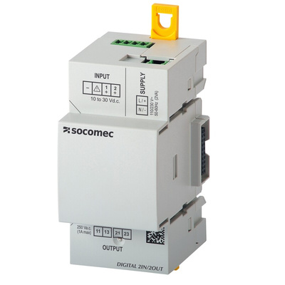 The Socomec DIRIS range optional module has 2 digital inputs which centralises the metering pulses or the input status changes of the auxiliary contacts and 2 digital outputs can be connected to configurable alarms warning of exceeded thresholds or can be piloted remotely.