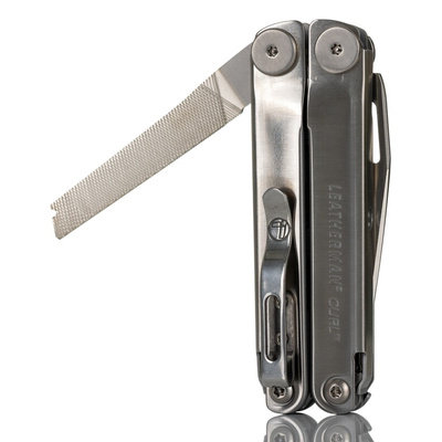 The Leatherman product is a curl , which is a multi tool. The Curl is packed with some of Leatherman iconic features yet affordable for first time users. Its equipped with 15 different tools, including an ultra sharp knife blade that's accessible with one hand, spring loaded scissors, and our customizable bit driver .