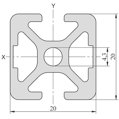 RS PRO Silver Aluminium, Anodized Profile Strut, 20 x 20 mm, 5mm Groove, 1m Length, Профильная стойка