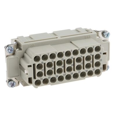 These Han® EE inserts are rated at 16A. They are intended for use with hoods and housings contained within ranges 5, 6, 7, & 8. These hood and housing ranges are associated to a specific Harting 'Size' number identifier. See the 'compatibility' table for details of this relationship, and stock numbers of hoods and housings that are typical of each range.