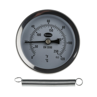 The principle of how Temperature Gauge work is around the idea of using two different bimetallic strips (usually steel and copper or steel and brass). When the strip is heated, the metal is bending in a Thermometer, and the opposite is happening when the strip is getting colder. Therefore, the movement of the pieces correlates to the temperature indicating on a scale. The credit of this discovery goes to English Gentleman John Harrison in the 18th century. Even though the possibilities and technologies are constantly evolving, his findings are still valid. The Temperature Gauge is a simple, inexpensive and durable device to display the temperature of the surrounding atmosphere or an object. The Temperature Gauges found their place in many industries, such as heating and ventilation, refrigeration industry, process manufacturing or process pipelines. There are many types of Temperature Gauge available on the current market. Some of them include magnetic thermometers (use with radiators), probe thermometers (use for food and gases) or clip Thermometers ideal for measuring the temperature of heating and water pipes. We are proudly introducing our own branded RS PRO Clip-on Pipe Temperature Gauge, which does not require any drilling to the pipework. This 66 mm diameter Thermometer with bi-metallic movement and glass window cover indicates the surface temperature of pipework for applications, such as boiler pipework or radiators. The Gauge scale oscillates between 0°C up to 120°C where the case material is steel.