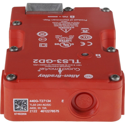 Ensure vital safe-access to machinery for personnel and boost efficiency with the TLS-3-GD2 440G-T Solenoid Interlock Switch, with Power-to-Release, 24V ac/dc, by Allen Bradley Guardmaster.