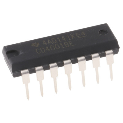 Texas Instruments CD4001BE, Quad 2-Input NOR Logic Gate, 14-Pin PDIP, Логический вентиль