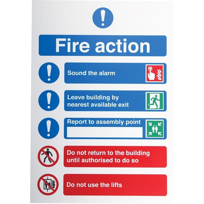RS PRO PP Fire Safety Sign, Fire Action Instructions With English Text, Знаки и этикетки