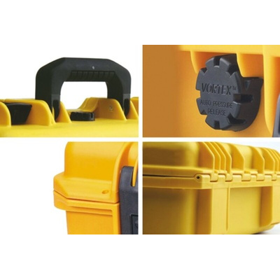 Vortex valve for excellent dust and water protection and internal pressure control so you can use and open the case at any altitude without the risk of vacuum locking