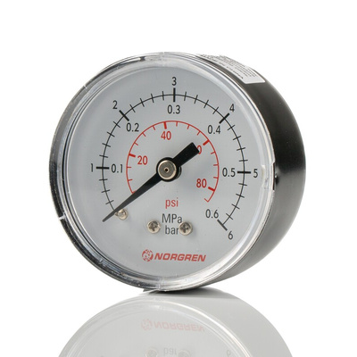 Norgren pressure gauges are designed on the bourdon tube operating principle. These gauges can be used within small capacity compressors, medical engineering, heating and Air Conditioning applications. Ideal for pneumatic applications. These gauges are highly reliable and work well monitoring the pressures of gaseous and liquid media (except highly viscous media).