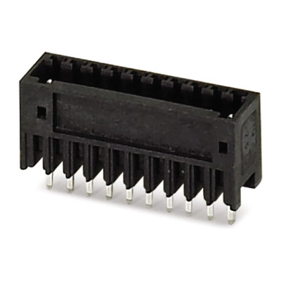 PCB headers, nominal cross section: 0.5 mm², color: black, nominal current: 4 A, rated voltage (III/2): 160 V, contact surface: Tin, type of contact: Male connector, Number of potentials: 11, Number of rows: 1, Number of positions per row: 11, number of connections: 11, product range: MCV 0,5/..-G-THT, pitch: 2.5 mm, mounting: THR soldering, pin layout: Linear pinning, solder pin [P]: 3.5 mm, Stecksystem: MICRO COMBICON - FK-MC 0,5, Locking: without, type of packaging: packed in cardboard, User information and design recommendations for through hole reflow technology can be found under: Downloads