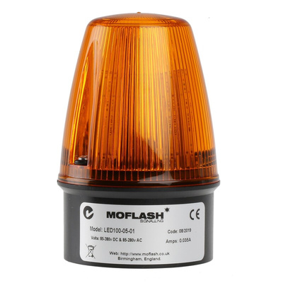 Moflash Flashing Amber Beacon, 40 to 380V DC, 85 to 285V AC - LED100 Series - LED100-05-01