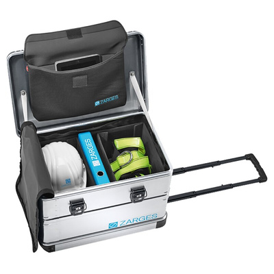 Soft protective pocket which easily attaches and detaches to the inside of the Zarges K424 XC transit cases for the quick accessing and the storage of small parts, documents or delicate instruments such as tablet PCs.